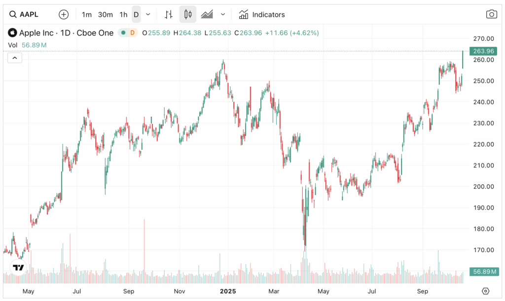 The key catalyst for Apple’s share strength was the unexpected demand for its latest iPhone 17. Sales for the smart handset have surged 14 percent in the first ten days and are expected to exceed $200 billion. Black Friday and the Christmas season may see consumers splash out further. If these better-than-expected sales materialised, iPhone’s growth will significantly improve Apple’s financial health. Hence the sudden rally here.