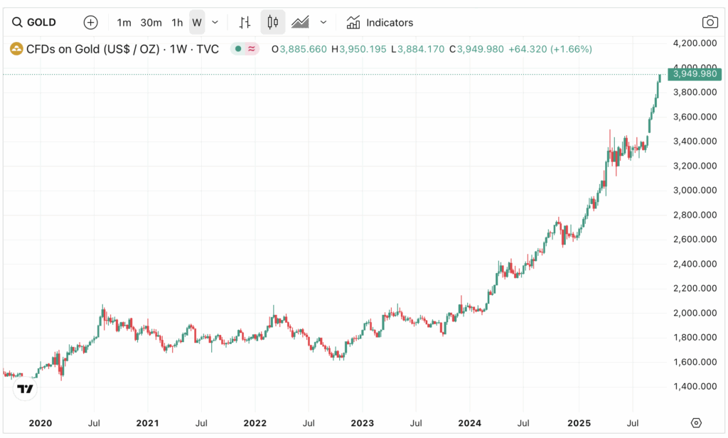 In this week’s global macro analysis: Gold is closing in on the unthinkable, $4,000 an ounce. As 2025’s final quarter unfolds, markets are witnessing a historic rally in precious metals. Driven by fear, fiscal uncertainty, and speculative momentum, gold has shattered record after record, defying traditional correlations with stocks and risk assets. But can this parabolic rise last? And will silver and mining stocks follow suit, or crumble when the fever breaks?