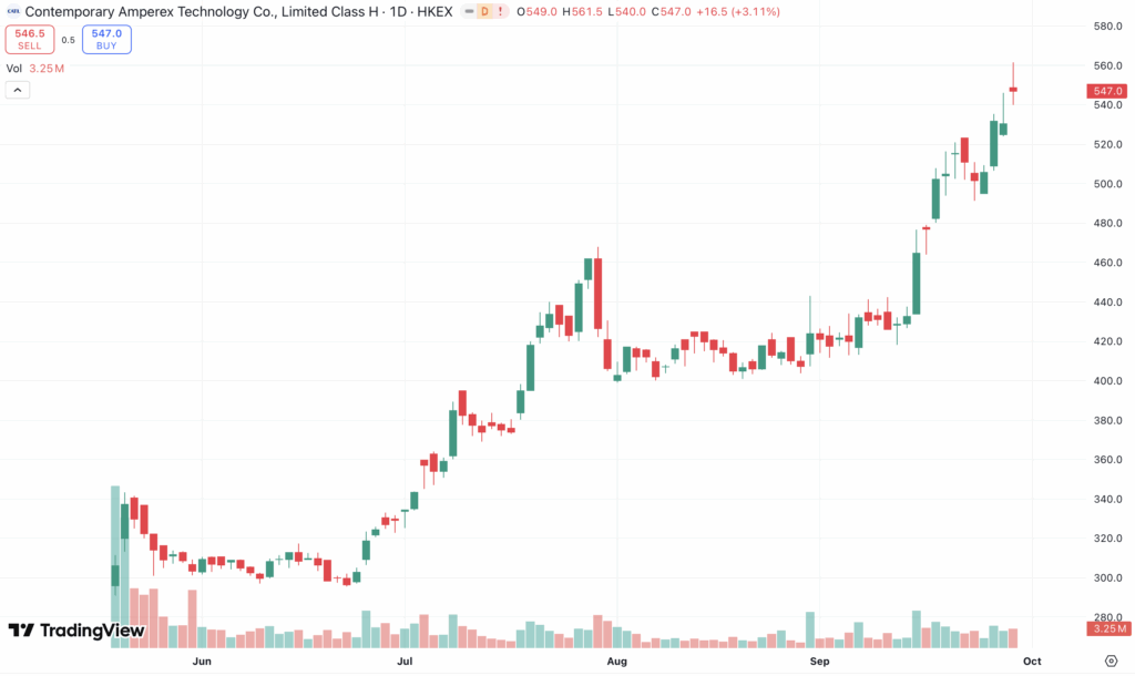 The company held one of the world’s largest IPOs in HKEX during the summer. Bullishness abound; and prices soon soared. CATL is now a US$250 billion company (48th largest globally). Its market share of the global EV battery sector is estimated at above 30 percent.