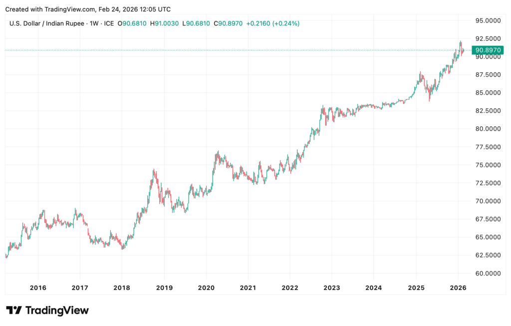 One of the reasons for this optimism is cost. The US data grid is crowded; electricity prices are set to increase due to mammoth demand. India, on the other hand, provides cheap power (at least when converted to USD). The Indian-USD exchange rate is depreciating against the USD.