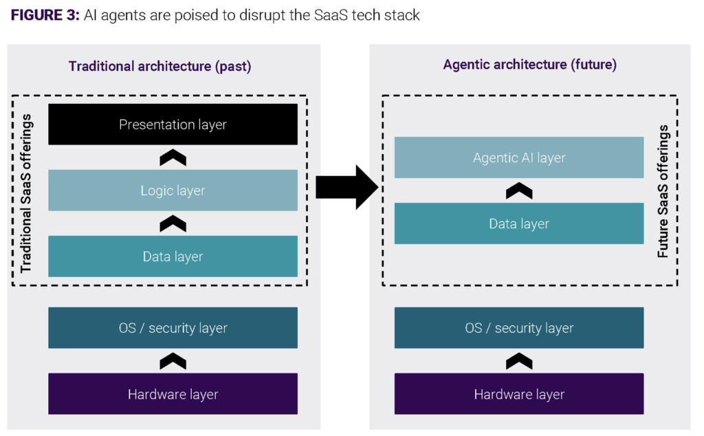 Moreover, AI (more specifically, Agentic AI) will also erode some of the competitiveness of the current Indian tech groups. The power of these new AI programs is that they can ‘disintermediate’ existing software applications by inserting a layer of hyper-effective AI Agents.