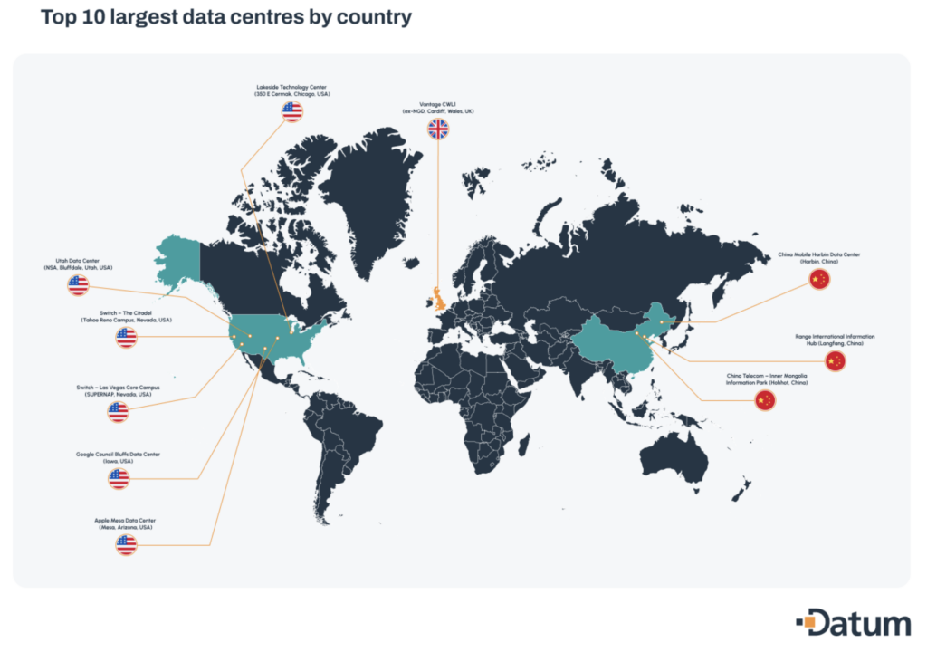 It is not surprising that out of the Top 10 Data Centres in the world right now, half of them are in the US, another 3 in China and 1 in the UK (see below).