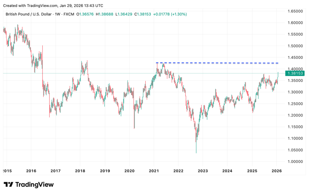 - GBPUSD surged in recent days to trade at its highest level since 2021