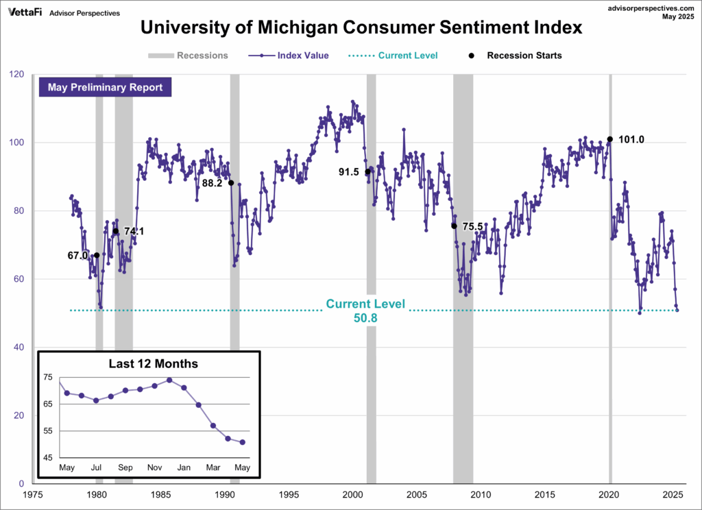 Last month, the long-standing US Michigan Consumer Sentiment Survey registered one of lowest values in years. The index was rising firmly until recently (Jan 25), when it plummeted from 70+ all the way to 50.8 (see below). Whenever the index is deteriorating this quickly, an economic slowdown is a firmly on the table. Who feels the economic chill first? Obviously, the masses.