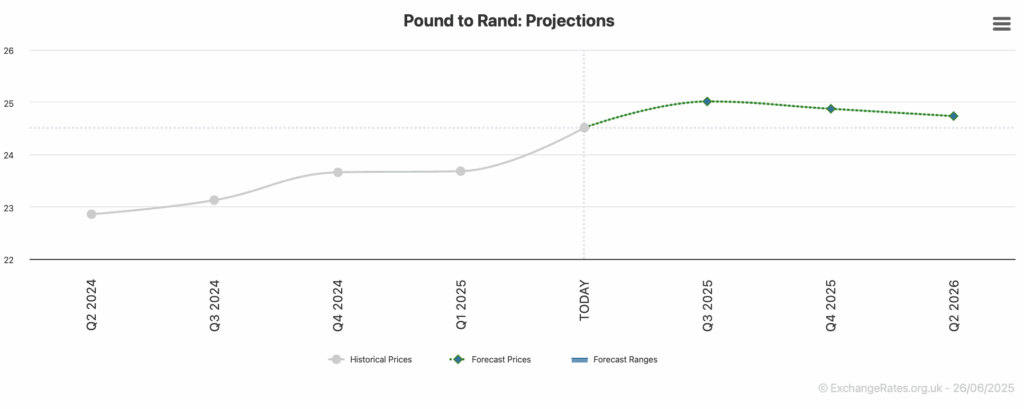 The general trend of GBPZAR’s forecasts are favourable to Sterling.